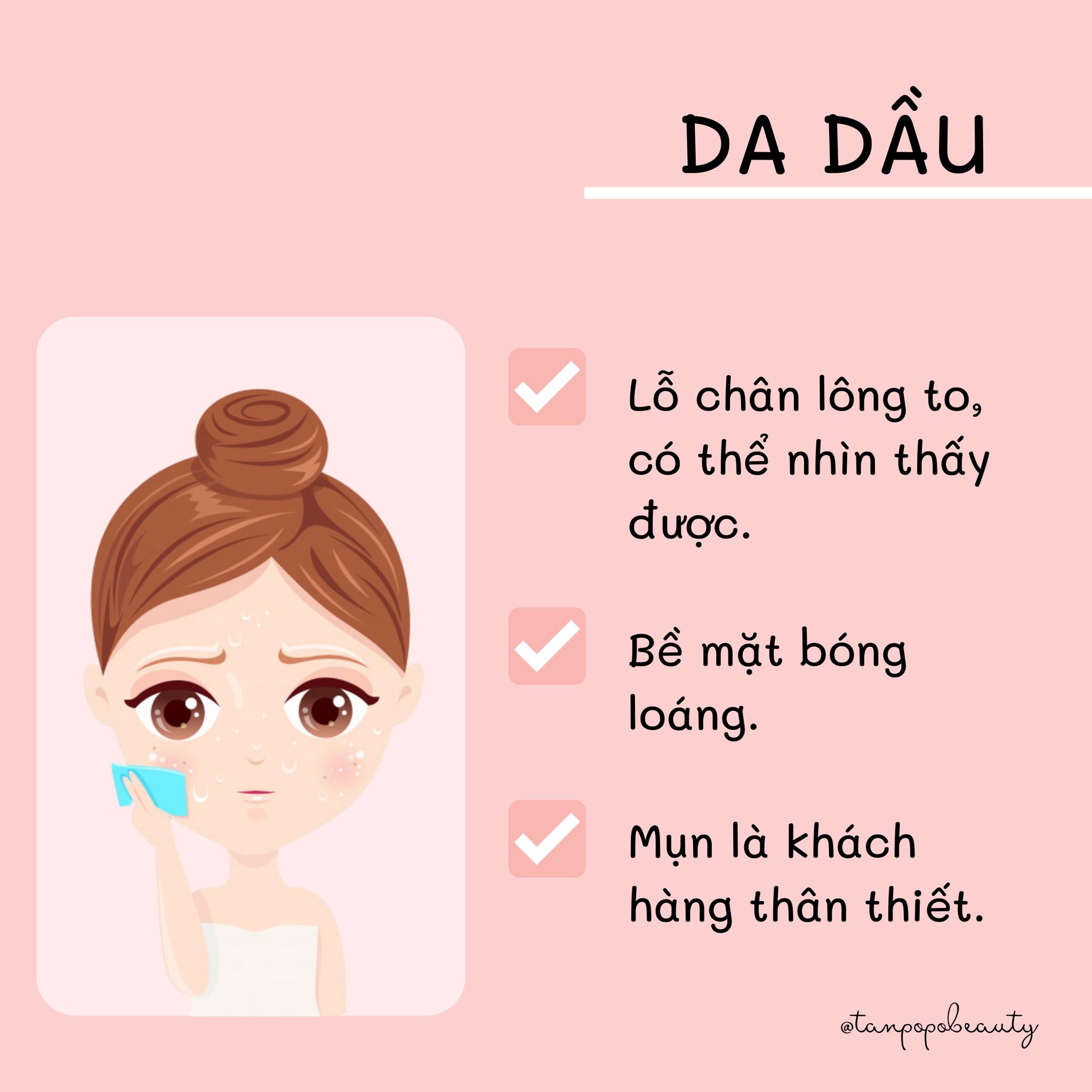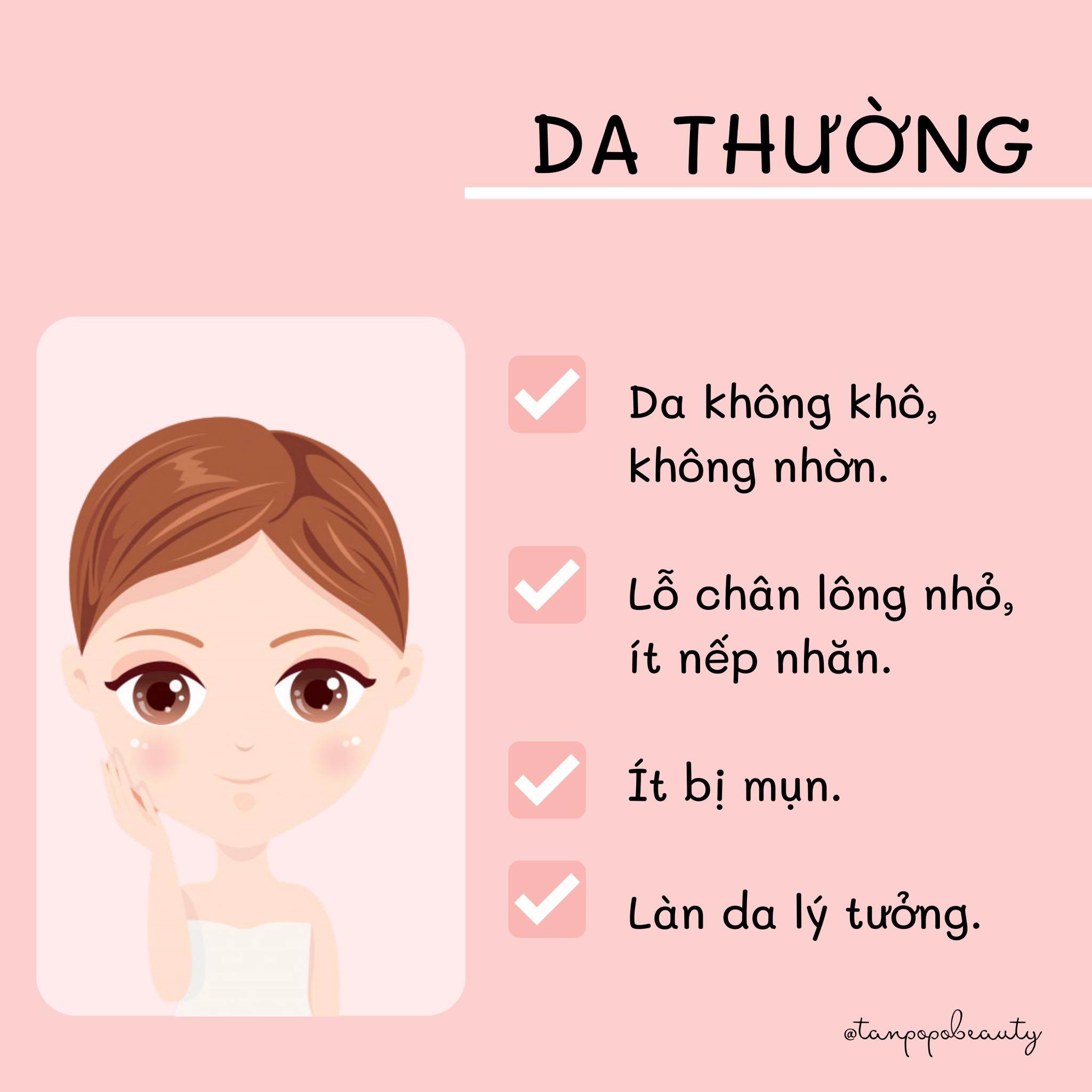 Đôi khi bạn sẽ cảm thấy làn da của mình thật “khó hiểu”, lúc thì khô đó, vậy mà có khi lại nhờn dính và bóng dầu. Thậm chí khi dùng cùng một sản phẩm chăm sóc da nhưng có thời điểm da đẹp lên trông thấy, có lúc da dường như lại “bão hòa”. Và để chăm sóc da hiệu quả, điều quan trọng nhất là bạn cần phải có kiến thức để phân biệt các loại da và xác định da mình đang thuộc loại nào. Cùng Tanpopo tìm hiểu ngay trong bài post này nhé !