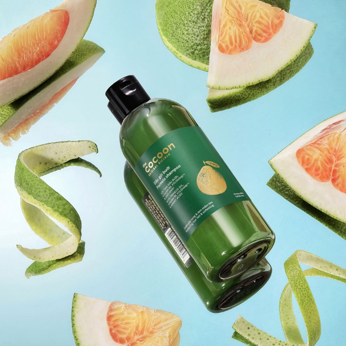 Dầu Gội Cocoon Pomelo Shampoo 310ml với thành phần chiết xuất từ thiên nhiên an toàn, lành tính từ tinh chất vỏ bưởi truyền thống kết hợp với Vitamin B5 và hoạt chất dưỡng ẩm Xylishine™, giúp làm sạch tóc, giảm gãy rụng hiệu quả. mang lại mái tóc chắc khỏe và mượt mà.