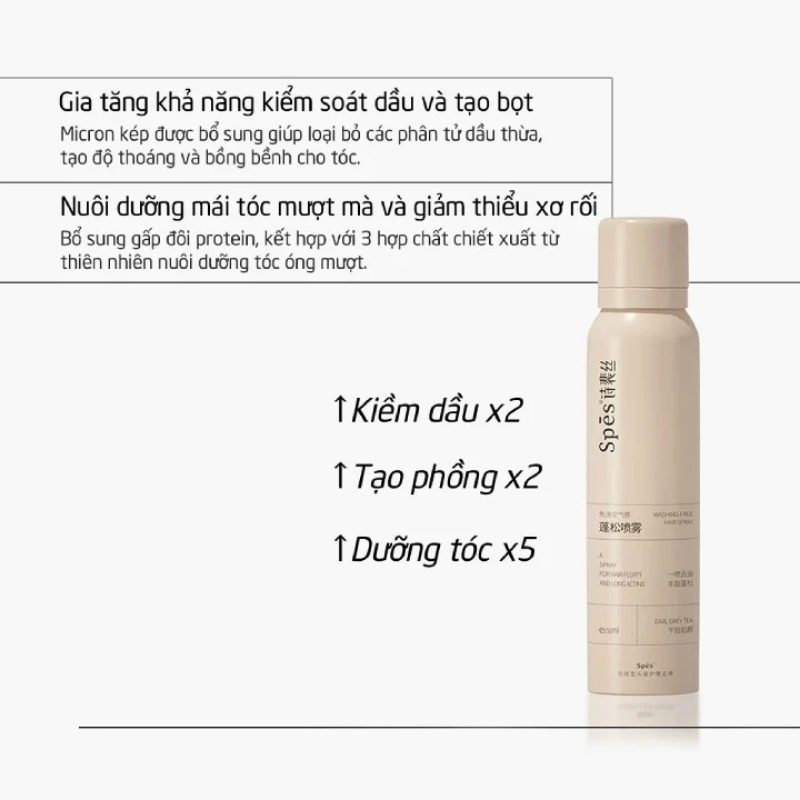 Xịt gội khô tiện lợi, giúp loại bỏ dầu trên tóc một cách nhanh chóng, khắc phục kịp thời tình trạng tóc bết dầu trong các tình huống không thể gội đầu ngay như khi bận rộn, ốm đau, hoặc vào những ngày đặc biệt.