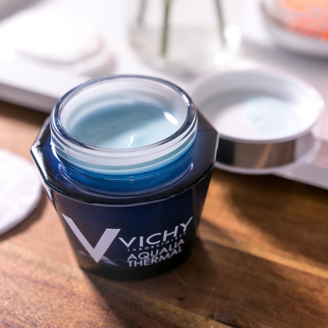 Mặt Nạ Ngủ Cấp Nước Vichy Aqualia Thermal Night Spa là sản phẩm thuộc dòng Purete Thermal - Dòng sản phẩm giúp làm sạch bề mặt da và lỗ chân lông. Giúp lấy đi mọi bụi bẩn và mồ hôi và độc tố từ ô nhiễm môi trường cho da thông thoáng và khỏe mạnh. Da sau khi được giải trừ độc tố, trên nền da sạch các hoạt chất dưỡng da sẽ hoạt động tốt hơn.