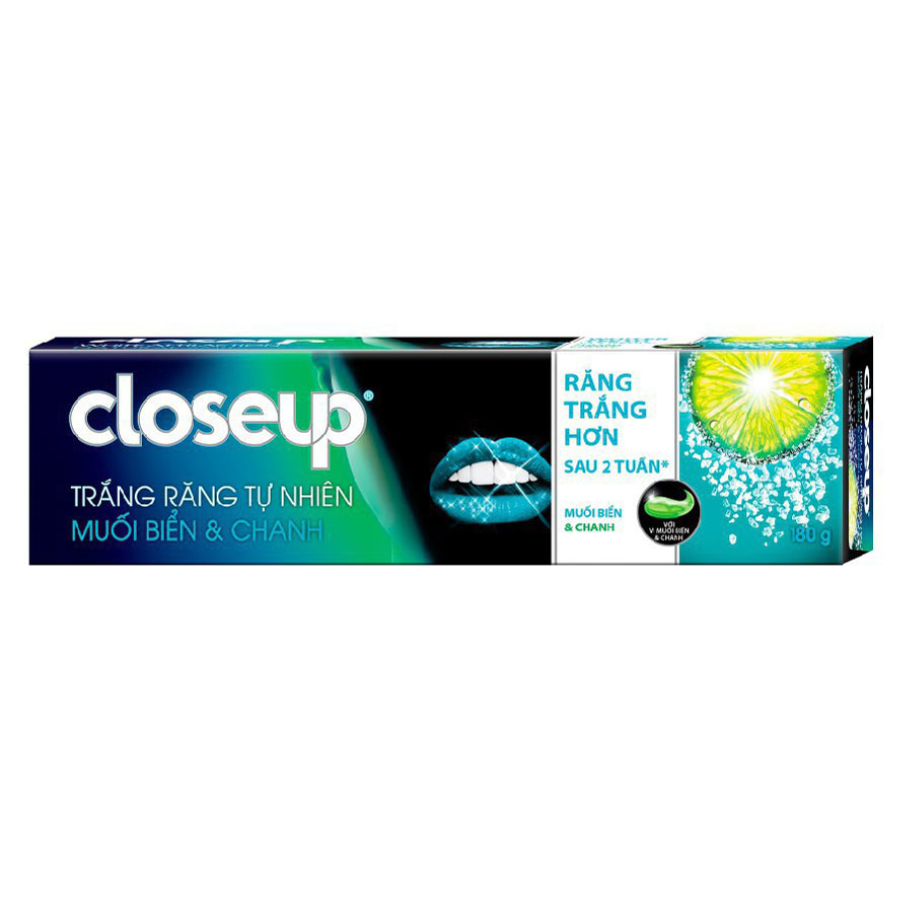 KĐR Close Up Trắng Răng Vị Muối Biển 180g trắng răng tự nhiên giúp răng trắng hơn sau 2 tuần sử dụng. Sự thơm mát hòa quyện của muối biển và chiết xuất chanh giúp làm sạch nhẹ nhàng và đánh bóng răng, cho nụ cười trắng sáng tự nhiên và hơi thở cực thơm mát sau mỗi lần sử dụng.