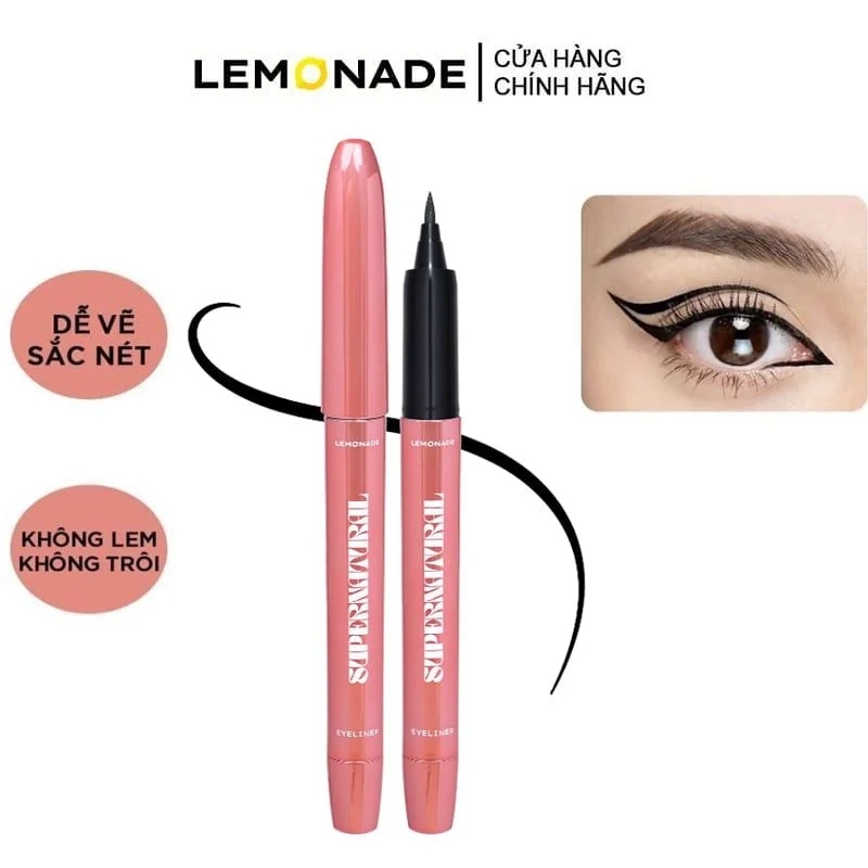 Kẻ Mắt Lemonade SuperNatural Eyeliner 1g - Black là kẻ mắt nước đến từ thương hiệu Lemonade có thiết kế đặc biệt như một cây bút máy, kết cấu có hệ thống bình mực trải dài giữa thân bút, để mực ra đều và không khô đầu bút cùng với nét vẽ có màu đen tuyền tạo chiều sâu từ đầu đến đuôi mắt, giúp đôi mắt mạnh mẽ, linh động dễ dùng và phù hợp cho tất cả mọi người.