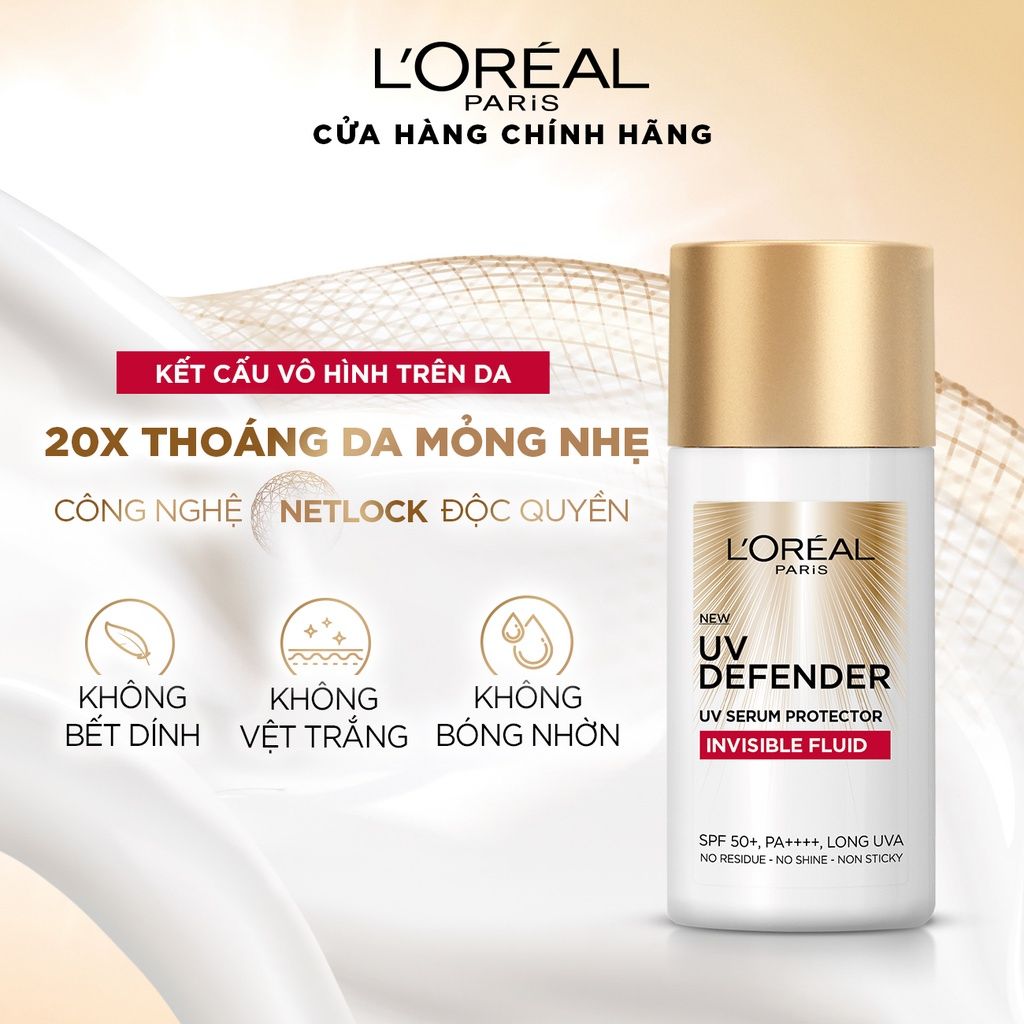 Kem Chống Nắng L’Oreal X20Thoáng Da Mỏng Nhẹ UV Defender Serum Invisible Fluid SPF50+ 50ml