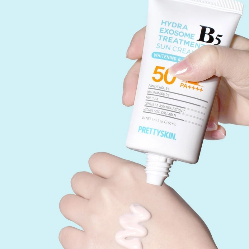 Kem Chống Nắng Pretty Skin Hydra B5 Exosome Treatment Sun Cream SPF50+ (50ml) là một sản phẩm chống nắng cao cấp đến từ Hàn Quốc, giúp bảo vệ da khỏi tác động của tia UV và cung cấp độ ẩm cho da. Dưới đây là một số thông tin chi tiết về sản phẩm này: