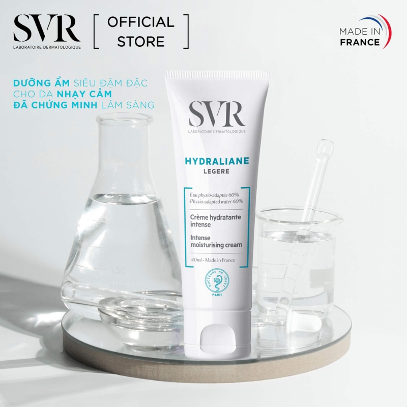 - Kem Dưỡng Ẩm Cho Da Thường Đến Hỗn Hợp SVR Hydraliane Legere với công chứa tới 60% “Physio-adapted water” - một loại nước Isotonic độc quyền của SVR có độ tương thích cao với làn da. Nó hoạt động bằng cách mô phỏng quá trình hydrat hóa tự nhiên của da để cung cấp độ ẩm cho da trong 24 giờ.