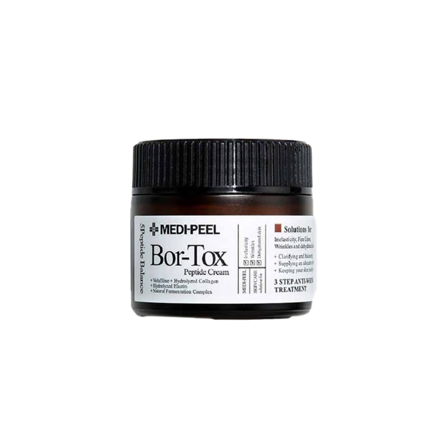 Kem Dưỡng Chống Lão Hoá Medi Peel Bor Tox Peptide Cream 50g chứa thành phần chính gồm Volufiline đến từ Pháp, 7 loại thành phần lên men cùng 5 loại Peptide giúp cung cấp dưỡng chất cải thiện nếp nhăn hiệu quả, nâng cơ, cho da đàn hồi săn chắc hơn.
