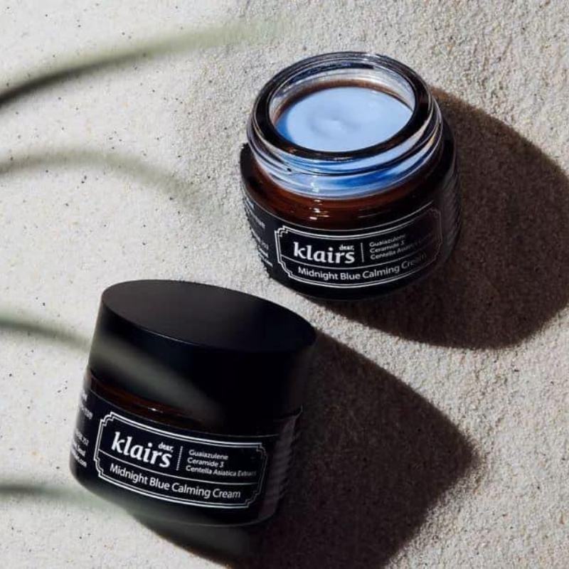 Kem Dưỡng Ẩm, Làm Dịu Da Ban Đêm Klairs Midnight Blue Calming Cream là kem dưỡng dành cho da nhạy cảm với thành phần Guaiazulene được chiết xuất từ dầu hoa cúc tạo màu xanh dịu mát tự nhiên, giúp làm dịu da kích ứng vô cùng hiệu quả. Cộng với chiết xuất rau má cấp ẩm, làm dịu da và hỗ trợ phục hồi da mụn rất tốt.