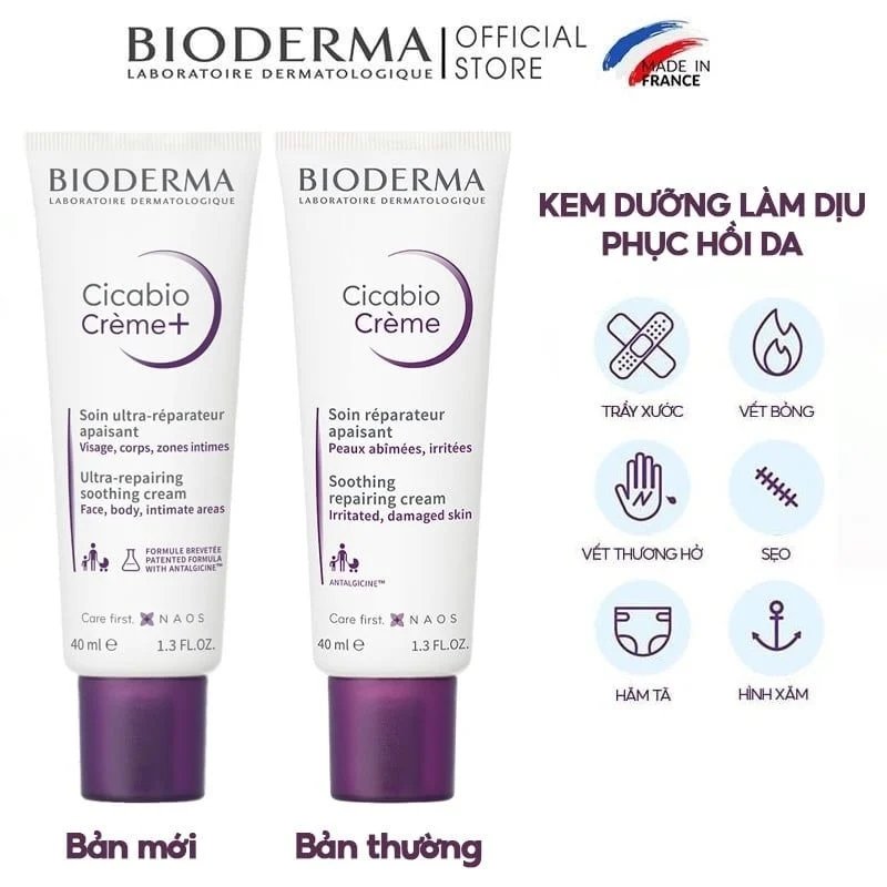 Kem Dưỡng Phục Hồi Da Bioderma Cicabio Creme+ Ultra-repairing Soothing Cream 40ml (Nhập Khẩu) là kem dưỡng giúp cải thiện hàng rào bảo vệ da nhanh gấp 3 so với lần bình thường. Với thành phần độc quyền ANTALGICINE™ giúp giảm cảm giác khó chịu, ngứa ran và thành phần Hyaluronic Acid có khả năng dưỡng ẩm. Cicabio Crème lành tính đối với làn da dễ kích ứng, đồng thời cải thiện hiệu quả cấu trúc da sau mụn hay sau quá trình xâm lấn (lăn kim/ peel/ laser…) thuộc thương hiệu dược mỹ phẩm Bioderma đến từ Pháp.