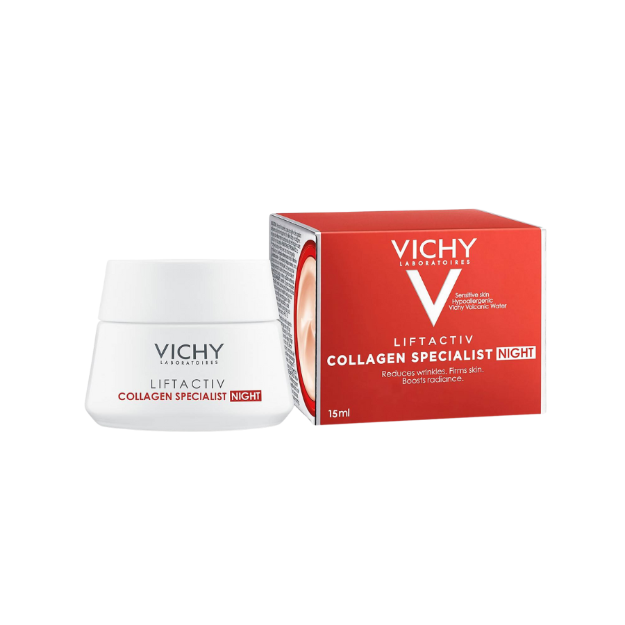 - Kem Dưỡng Vichy Liftactiv Collagen Specialist chứa nước khoáng Vichy. Công thức giàu nước khoáng núi lửa Vichy giúp cấp nước, làm dịu da tức thì, chống oxy hóa - bảo vệ da trước tác động của gốc tự do trong ánh nắng, củng cố & phục hồi hàng rào bảo vệ da.