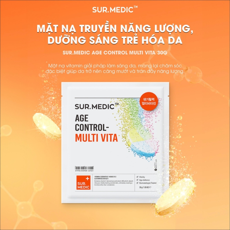 Mặt nạ Sur.Medic Age Control Multi Vita Mask là dòng mặt nạ tuyệt vời trong việc hỗ trợ người dùng trong việc ngăn ngừa lão hóa và cải thiện tình trạng làn da bị chảy xệ. Ngoài ra, công dụng cấp ẩm của sản phẩm cũng sẽ giúp người dùng có được một làn da mịn màng, căng bóng.