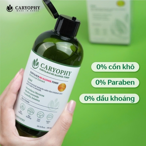 Nước Hoa Hồng Caryophy Ngừa Mụn Kiềm Dầu Giảm Thâm Portulaca Toner 300ml là sản phẩm toner không cồn thuộc “bộ 3 chiến binh Caryophy” dành riêng cho da mụn đến từ thương hiệu mỹ phẩm Caryophy xuất xứ Hàn Quốc. Công thức với thành phần 100% chiết xuất dưỡng chất từ thiên nhiên như Rau Má, Rau Sam, Chùm Ngây, Nhân Sâm... giúp mang lại công dụng làm giảm mụn thâm, dưỡng ẩm, tẩy da chết, cân bằng độ pH cho da và là bước đệm hoàn hảo để các dưỡng chất thấm sâu vào da tốt nhất.