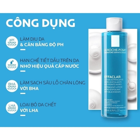 Nước Hoa Hồng La Roche-Posay Effaclar (Da Dầu) - 200ml [Nhập Khẩu) là nước cân bằng có tác dụng thu nhỏ lỗ chân lông hiệu quả, giúp điều tiết lượng bã nhờn và làm sạch lượng bã nhờn sâu trong lỗ chân lông với công thức micro-exfoliating lipo-hydroxy acid và 15 thành phần khoáng chất dinh dưỡng có trong nước khoáng La Roche Posay giúp chăm sóc làn da ẩm mịn thuộc thương hiệu dược mỹ phẩm La Roche-Posay đến từ Pháp.