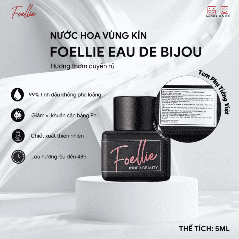 Foellie Inner Perfume Eau De Bijou 5ml là dòng nước hoa vùng kín cao cấp đến từ Hàn Quốc, được thiết kế dành riêng cho phụ nữ hiện đại – những người luôn quan tâm đến sức khỏe và sự tự tin của bản thân. Với hương thơm ngọt ngào, tinh tế và khả năng khử mùi hiệu quả, sản phẩm giúp bạn luôn thơm mát, quyến rũ và thoải mái suốt cả ngày.