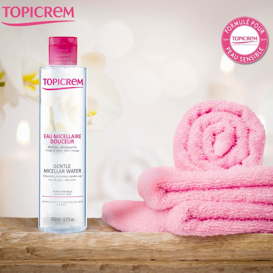 Nước Tẩy Trang TOPICREM Gentle Micellar Water đến từ thương hiệu dược mỹ phẩm TOPICREM được thiết kế dành riêng cho làn da nhạy cảm, giúp nhẹ nhàng làm sạch và loại bỏ lớp trang điểm mắt và mặt, đồng thời giữ ẩm cho da, mang đến làn da thông thoáng và tươi mát.