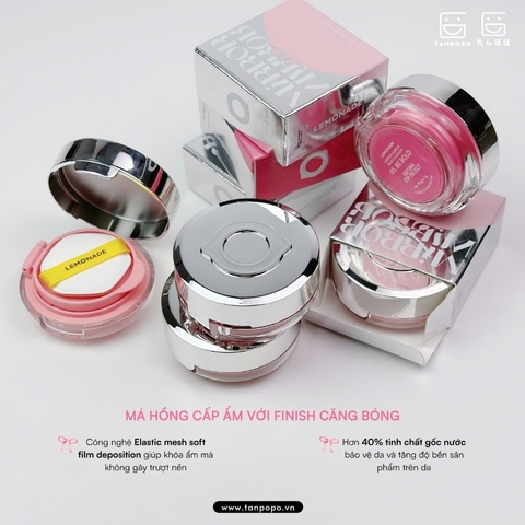 Phấn Má Lemonade Mirror Mirror Blush Cushion là dòng má hồng dạng phấn nước độc đáo, đã tạo được tiếng vang ngay khi ra mắt. Sản phẩm đạt trọn vẹn sự tiện lợi của thiết kế cushion giúp bạn rạng rỡ dù ở bất cứ nơi đâu. Công nghệ khóa dưỡng chất kết hợp với màng film kép giúp chất kem bám chắc trên da, không trôi - không lem - không nặng mặt, giữ màu má trên da suốt 8 giờ.