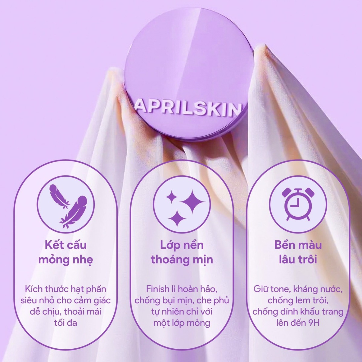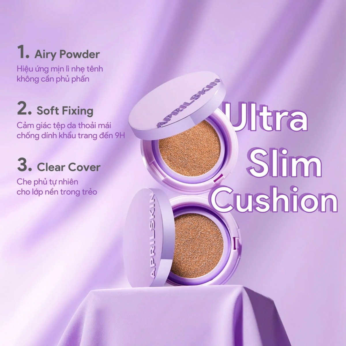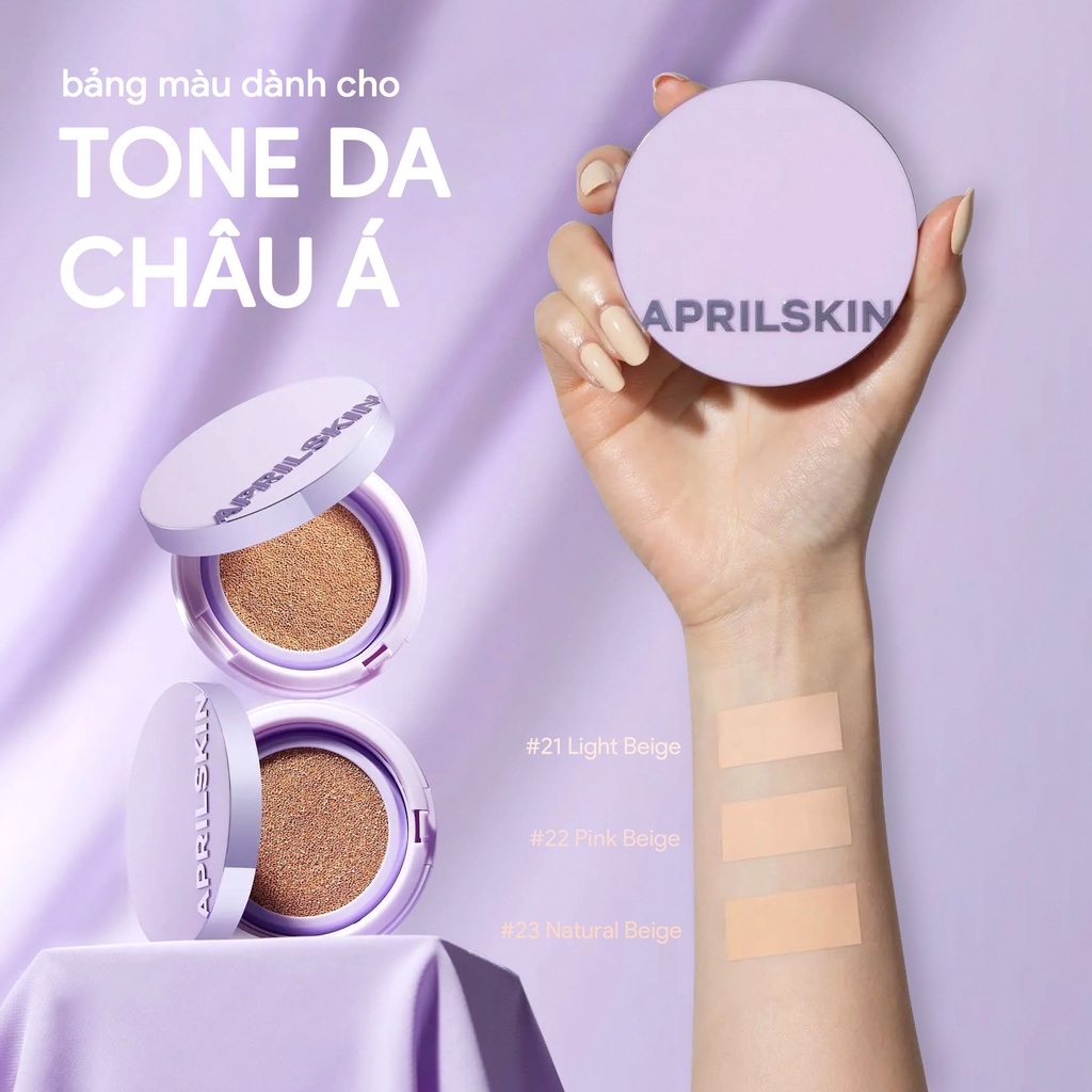 Phấn Nước Aprilskin Siêu Mỏng Nhẹ là phấn nước cushion đến từ thương hiệu mỹ phẩm Aprilskin của Hàn Quốc, tạo hiệu ứng mịn lì nhẹ tênh không cần phủ phấn, đem lại cảm giác tệp da thoải mái, ngăn dính khẩu trang đến 9 giờ. Cushion có độ che phủ tự nhiên mang lại lớp nền trong trẻo, mềm mịn như nhung.