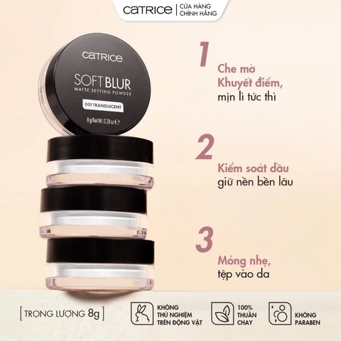 Phấn Phủ Dạng Bột Kiềm Dầu Catrice Soft Blur Matte Setting Powder 8g - 020 Light là phấn phủ dạng bột giúp kiềm dầu, cố định lớp nền và tạo hiệu ứng blur mịn da. Sản phẩm mang lại lớp finish lì nhẹ, tự nhiên, không cakey.