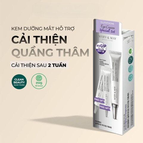 Set Kem Mắt Mary & May Glutathione Eye Cream Special Set (30g+12g x2) là bộ kem mắt giúp dưỡng sáng vùng da mắt, giảm thâm quầng và cải thiện nếp nhăn. Với thành phần Glutathione nổi bật, sản phẩm giúp vùng da mắt tươi sáng, mịn màng hơn.