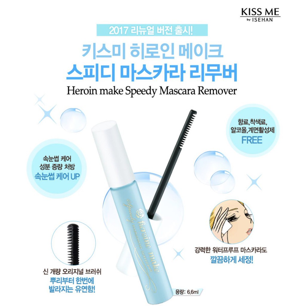 Với khả năng chống nước siêu thần thánh của dòng Mascara, hãng Heroine Make đã nghiên cứu và cho ra đời thêm dòng sản phẩm tẩy trang chuyên dụng Kiss Me Speedy Mascara Remover dành riêng cho đứa con cưng của hãng.