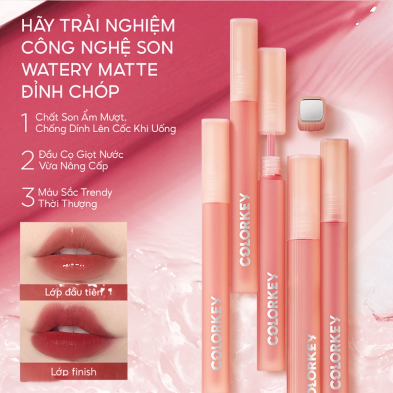 Son Colorkey Kem Lì Siêu Mịn Môi Soft Matte Water Tint là một minh chứng cho sự sáng tạo và tinh tế của thương hiệu. Sản phẩm này kết hợp giữa chất son kem lì và công nghệ water tint tiên tiến, mang lại cảm giác nhẹ nhàng, thoải mái nhưng vẫn bền màu và sắc nét.