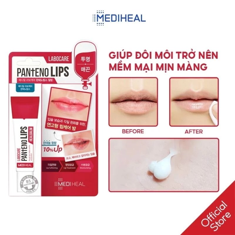 - Dưỡng ẩm và làm mềm môi: Với công thức 10% hàm lượng Panthenol giúp hạn chế tình trạng khô, nứt nẻ và căng thẳng cho môi. Hoạt động bằng cách làm mềm lớp tế bào chết mang lại hiệu quả làm mềm và căng mọng cho môi.