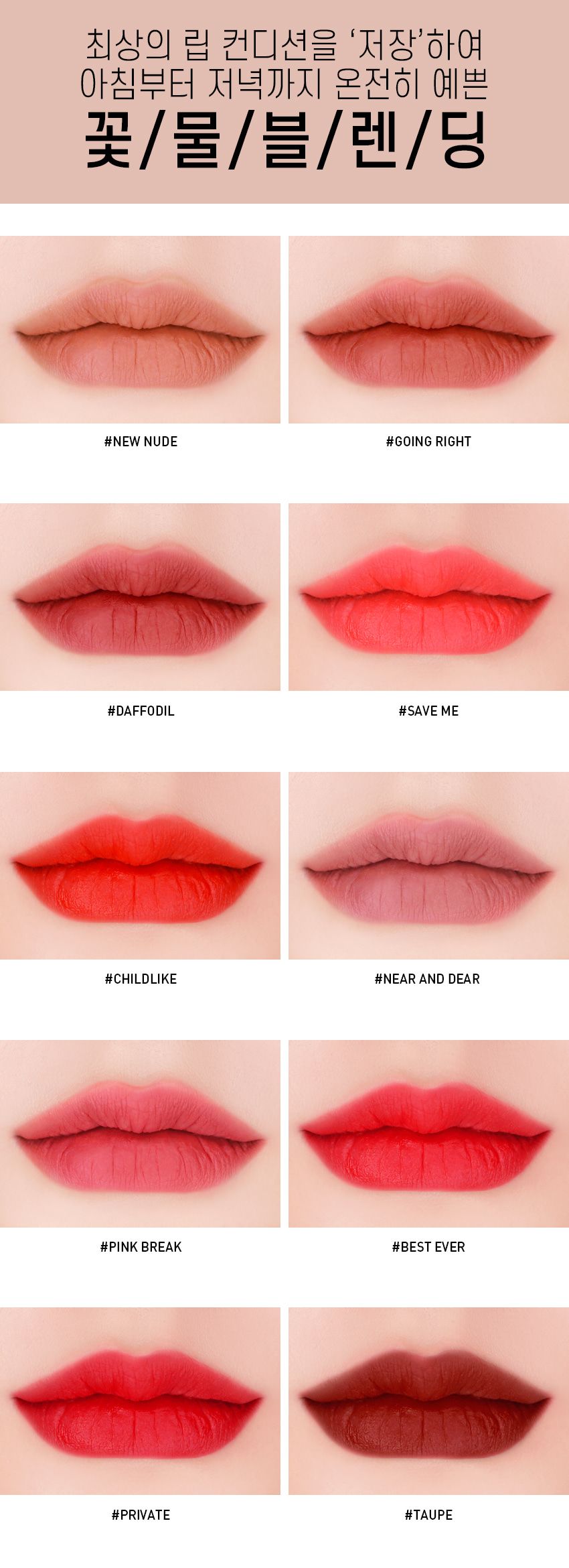 Son kem lì 3CE Velvet Lip Tint bao gồm 10 màu son trải dài từ các tông màu nude, màu trầm đến các tông màu tươi sáng, rực rỡ. Đây đều là những màu son thời thượng, được các cô nàng sành điệu săn đón.