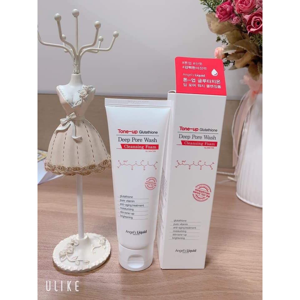 Sữa rửa mặt Angel's Liquid Tone-up Glutathione Deep Pore Wash 120ml có khả năng tạo bọt cực mịn kết hợp với công thức nhẹ dịu, giúp làm sạch bụi bẩn, bã nhờn, dầu thừa trên da, cân bằng pH cho da khỏe mạnh
