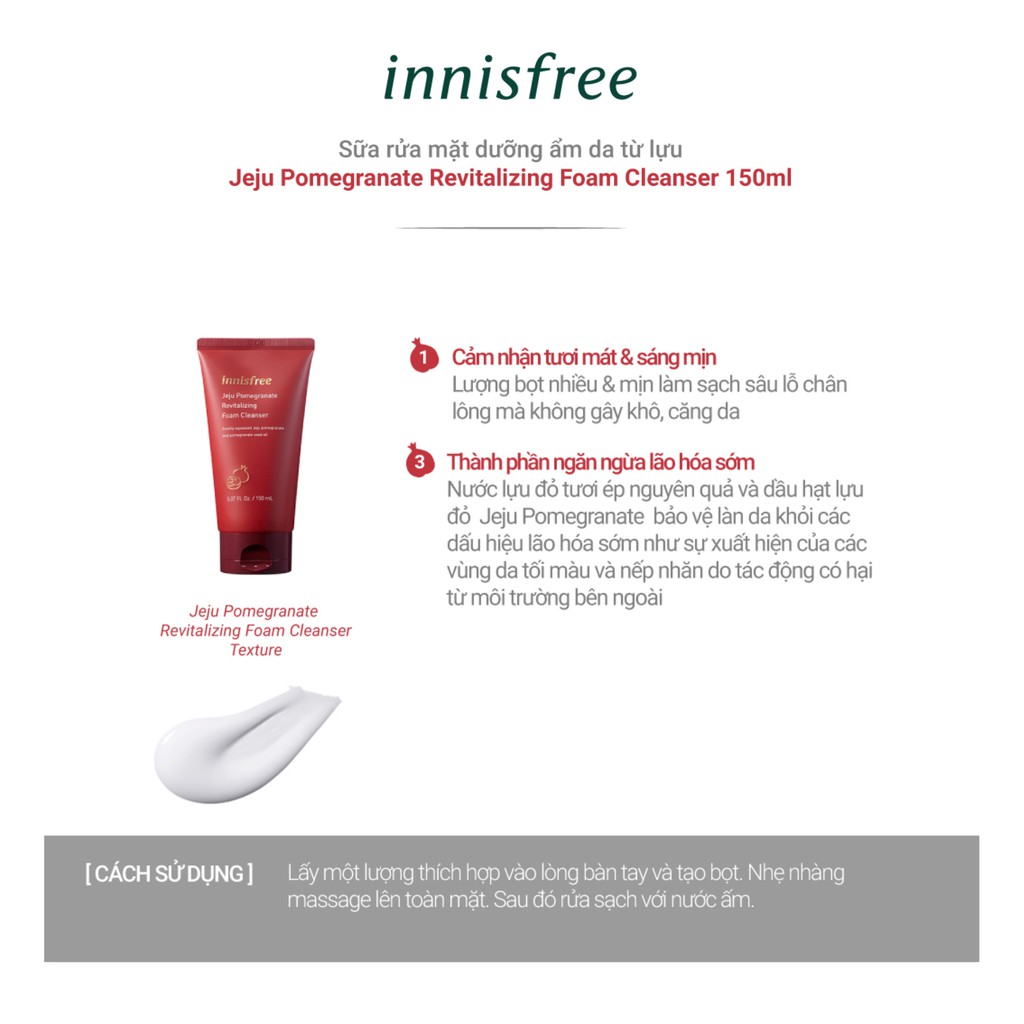 - Sữa rửa mặt Innisfree lựu đỏ review giúp nuôi dưỡng làn da tươi trẻ, tái tạo và phục hồi làn da khỏe mạnh, tràn đầy sức sống.