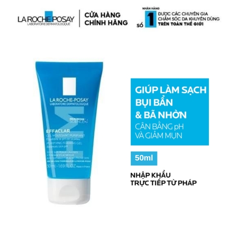 - Sữa Rửa Mặt La Roche-Posay Cho Da Dầu, Nhạy Cảm Effaclar Gel Moussant Purifiant 50ml với các thành phần làm sạch dịu nhẹ phù hợp cho da dầu và da mụn nhạy cảm. Nhẹ nhàng làm sạch tạp chất và bã nhờn dư thừa. Hỗ trợ giảm hình thành mụn đầu đen và hạn chế bóng nhờn hiệu quả, mang lại làn da sạch thoáng