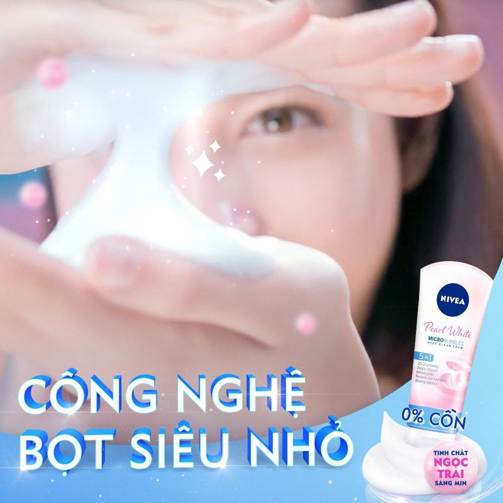 1. Sữa Rửa Mặt Nivea Tinh Chất Ngọc Trai Làm Sáng Da Pearl White Micro Bubbles Deep Clean Foam 5IN1 100g