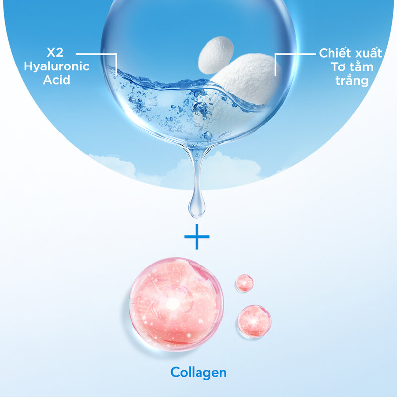 Tinh chất tơ tằm trắng cùng với công thức gấp đôi Hyaluronic Acid: duy trì lớp màng dưỡng ẩm tự nhiên giúp da sáng mịn và mềm mượt.