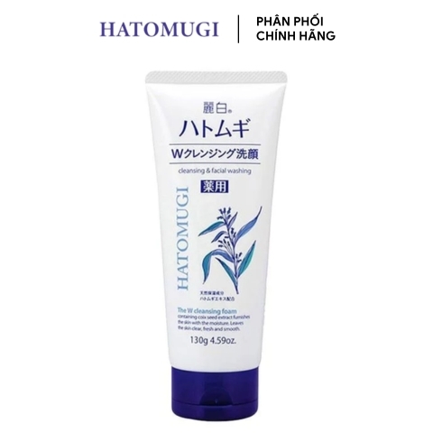 Sữa Rửa Mặt Tẩy Trang Và Làm Sáng Da Hatomugi Cleansing & Facial Washing 130gm với thành phần chính từ chiết xuất hạt ý dĩ hay, không chỉ làm sạch bụi bẩn và vi khuẩn trên da, mà còn chăm sóc nhẹ dịu, cấp ẩm cho da mịn màng, dưỡng da săn chắc, sáng mịn.
