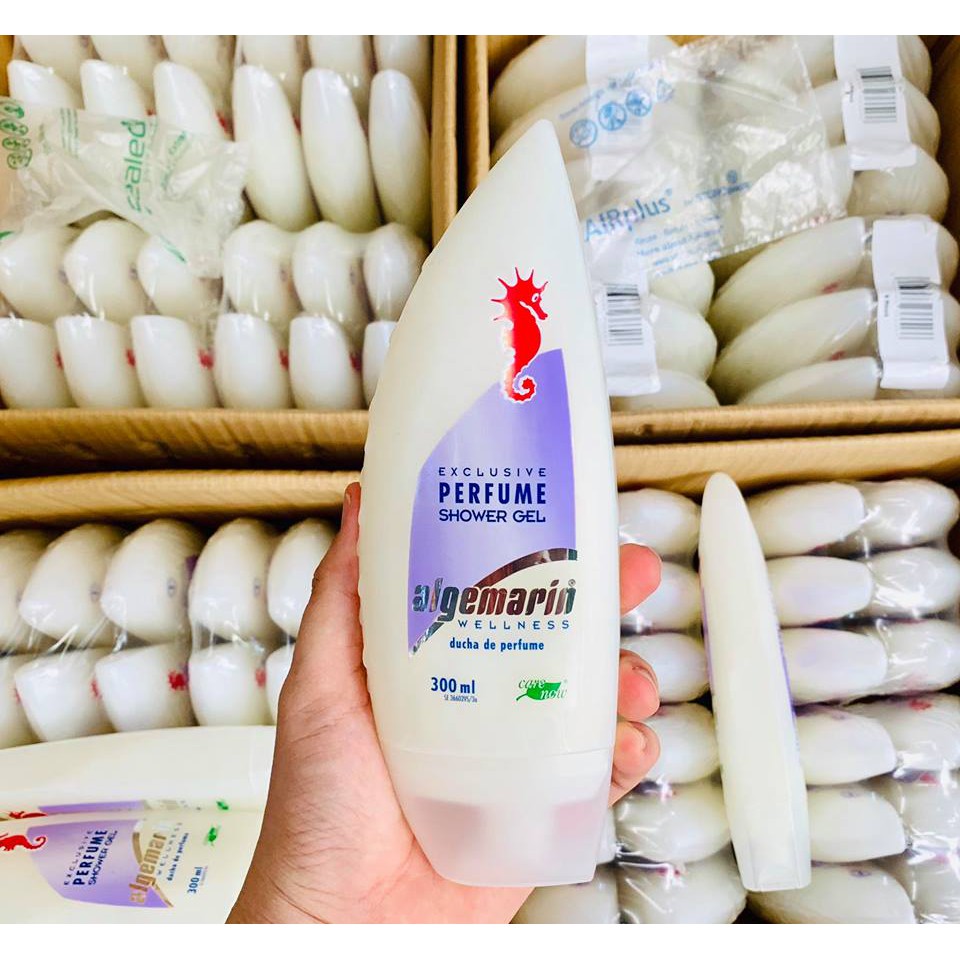 Sữa tắm cá ngựa 300ml có tên đầy đủ Algemarin Wellness Perfume Shower Gel có xuất sứ từ Đức, sữa tắm cao cấp với mùi nước hoa quý phái, được chiết xuất từ các loài hoa và vitamin thiên nhiên giúp bổ sung protein và các chất dinh dưỡng giúp làn da cân bằng độ ẩm tự nhiên, làm mềm mịn da, chăm sóc da nhẹ nhàng, tăng cường sức sống cho làn da và làm chậm quá trình lão hóa da toàn thân.