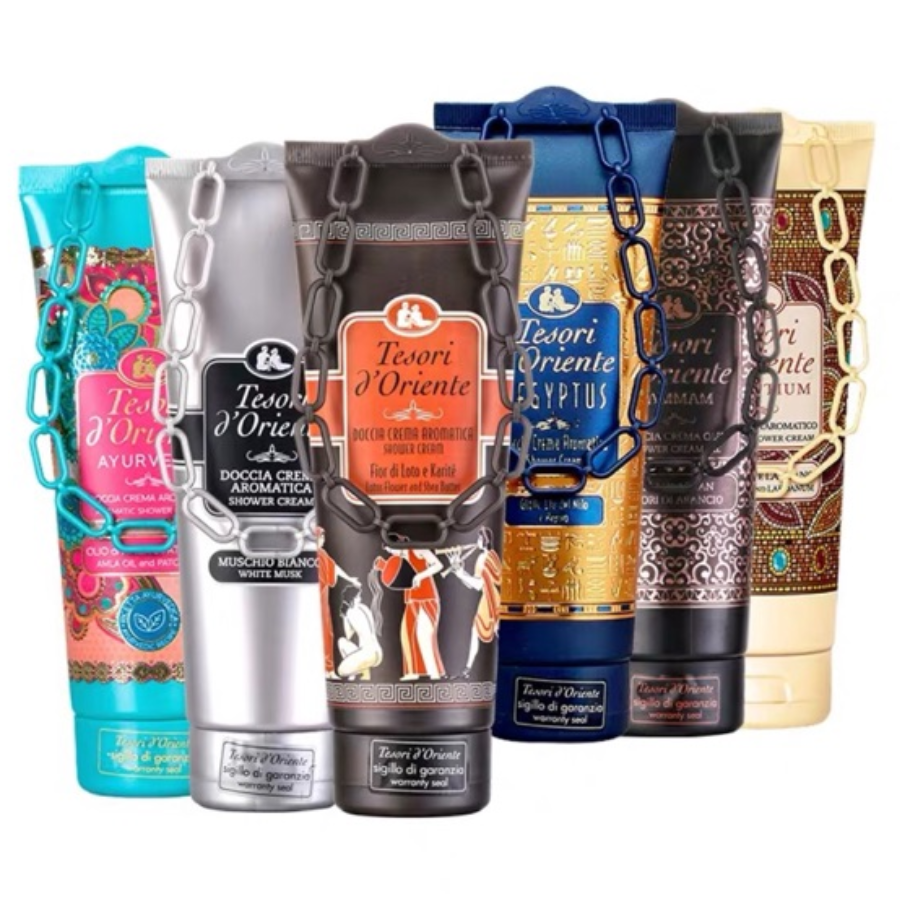 Sữa Tắm Dây Xích Tesori d'Oriente 250ml rất đa dạng về chủng loại và mùi hương. Có tới 15 mùi hương khác nhau phụ vụ nhu cầu sở thích của mọi người, lựa chọn cho mình một mùi hương ưng ý nhất. Một số dòng sữa tắm được ưa chuộng và chọn mua nhiều nằm trong BST sữa tắm nước hoa dây xích tesori.