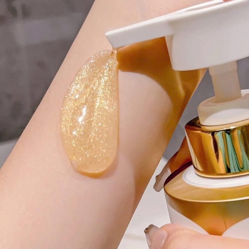 - Chất sữa ẩm đặc với màu vàng lấp lánh sang trọng, cùng hương thơm tràm trà, hoa huệ, dành dành nhẹ nhàng cho bạn cảm giác thư giãn mỗi khi tắm. Mùi hương thanh mát, dưỡng ẩm tốt , làm da mềm mại nhờ hàm lượng vitamin E cao, lưu mùi hương hoa quyến rũ lâu dài.