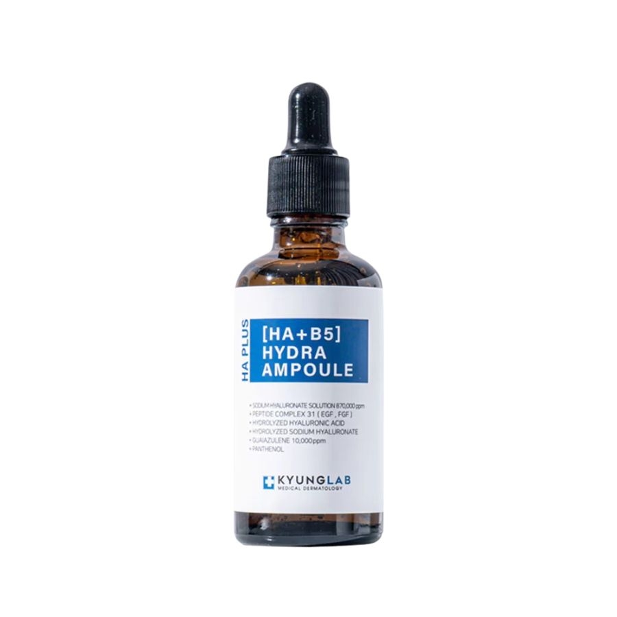 Tinh Chất Cấp Nước Căng Bóng Da Kyung Lab Ha Plus (HA + B5) Hydra Ampoule 50ml giúp cấp nước, phục hồi, làm dịu da và mang lại độ căng bóng cho da. Thích hợp sử dụng cho mọi loại da, ngay cả với làn da nhạy cảm.