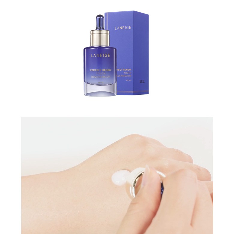 Tinh Chất Chống Lão Hóa Laneige Perfect Renew Youth Regenerator 40ml Chứa công thức dưỡng da “Energy-Glyco” được chiết xuất từ rễ cây ngải tiên giúp nhẹ nhàng dưỡng ẩm cho da hiệu quả cùng công nghệ tái tạo da Skin Rebirth™ chứa thành phần chiết xuất từ rễ cây riềng nếp có tác dụng tăng cường độ ẩm, mang lại sức sống cho làn da.