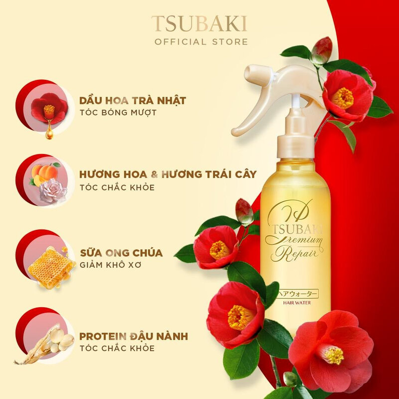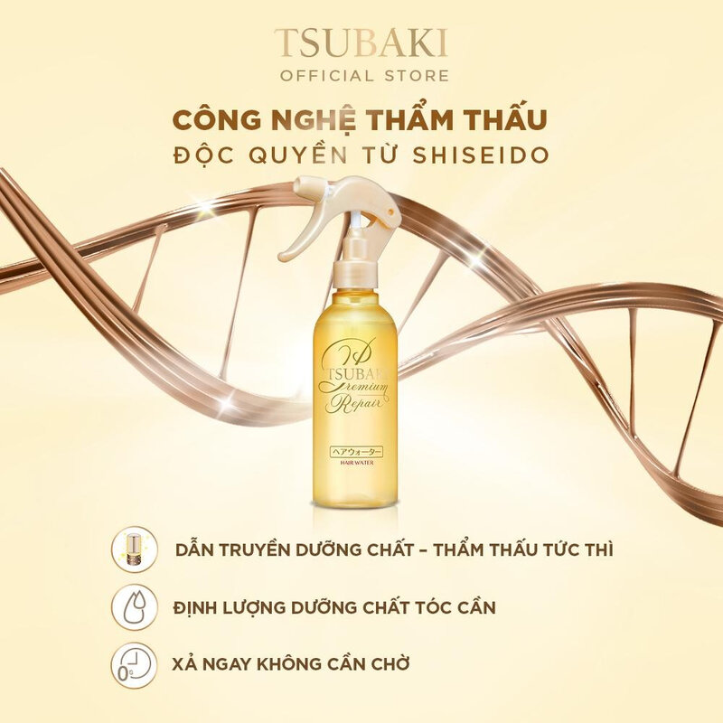Xịt Dưỡng Tóc Phục Hồi Hư Tổn, Ngăn Rụng Tóc Tsubaki Premium Repair Hair Water Chứa Dual amino acid giúp mở rộng đường dẫn các dưỡng chất vào tóc, có khả năng phục hồi mạnh mẽ cho tóc hư tổn do các tác động từ môi trường bên ngoài như ánh nắng, gió, sử dụng nhiệt trên mái tóc giúp mái tóc hư tổn phục hồi nhanh chóng hơn.