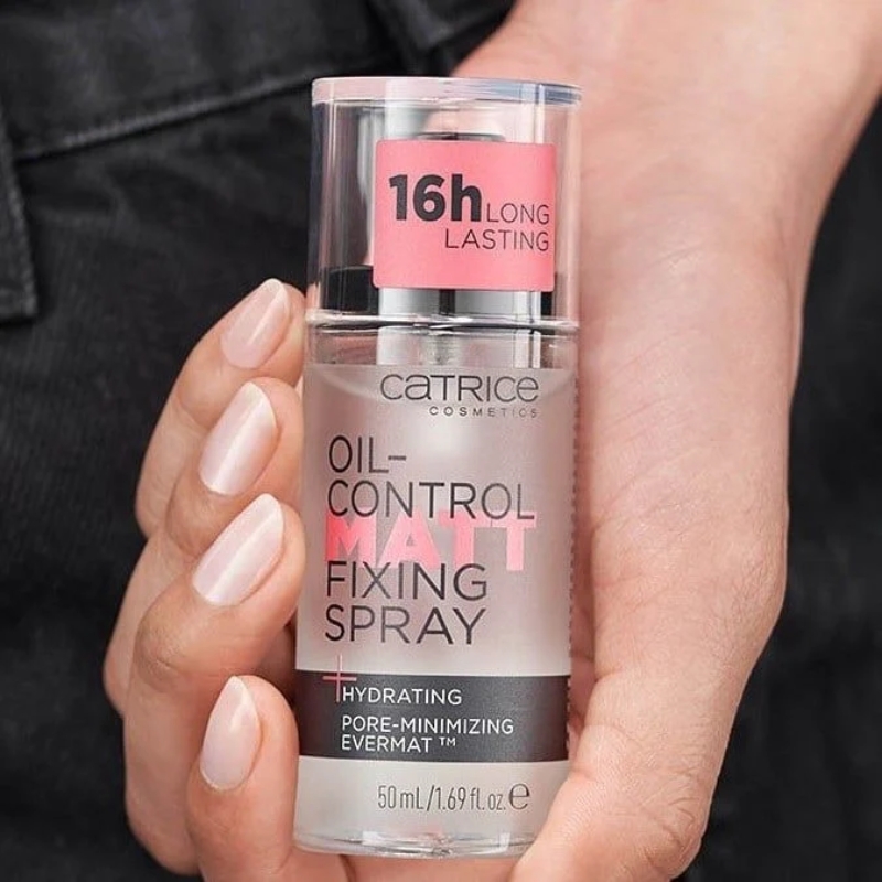 Xịt khoáng khóa nền Catrice Oil-Control Matt Fixing Spray 16h với khả năng khóa lớp makeup, giữ cho lớp nền không bị xuống tông cũng như bền đẹp suốt cả ngày dài mà hoàn toàn không có dấu hiệu bóng nhờn hay đổ dầu xấu xí.